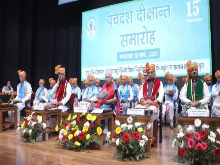 मथुरा | पंडित दीनदयाल उपाध्याय पशु चिकित्सा विज्ञान एवं गो अनुसंधान संस्थान में 15वाँ दीक्षांत समारोह आयोजित हुआ।जिसकी अध्यक्षता उत्तर प्रदेश की राज्यपाल एवं विश्वविद्यालय के कुलाधिपति आनंदीबेन पटेल ने की।