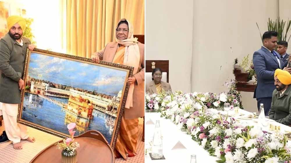 "ਪੰਜਾਬ ਦੌਰੇ 'ਤੇ ਆਏ ਦੇਸ਼ ਦੇ ਮਾਣਯੋਗ ਰਾਸ਼ਟਰਪਤੀ ਸ਼੍ਰੀਮਤੀ Droupadi Murmu ਜੀ ਦੀ ਸ੍ਰੀ ਅੰਮ੍ਰਿਤਸਰ ਸਾਹਿਬ ਵਿਖੇ ਨਿੱਘੀ ਮਹਿਮਾਨ ਨਿਵਾਜ਼ੀ ਕਰਨ ਦਾ ਮੌਕਾ ਮਿਲਿਆ। ਇਸ ਦੌਰਾਨ ਉਹਨਾਂ ਨੇ ਪੰਜਾਬੀ ਖਾਣੇ ਦਾ ਆਨੰਦ ਮਾਣਿਆ।