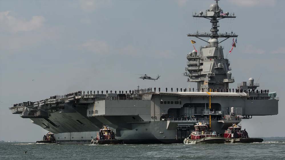 यह अमेरिकी जंगी जहाज है दुनिया का सबसे बड़ा एयरक्राफ्ट कैरियर है. अपने क्लास का पहला विमानवाहक पोत, जिसे मई 2017 में कमीशन किया गया. इसके चार और पोत तैयार हो रहे हैं. यह 337 मीटर लंबा है. इसकी बीम 748 मीटर की है. इसका फुल लोड डिस्प्लेसमेंट 1 लाख टन है. इसपर 78 मीटर चौड़ा फ्लाइट डेक है. इसपर इलेक्ट्रोमैग्नेटिक एयरक्राफ्ट लॉन्चिंग सिस्टम लगा है. एडवांस्ड अरेस्टिंग गीयर की सुविधा है. इसपर एक बार में 75 एयरक्राफ्ट तैनात किए जा सकते हैं. इसके आलावा यह 4539 सैनिकों को अपने साथ ले जा सकता है.