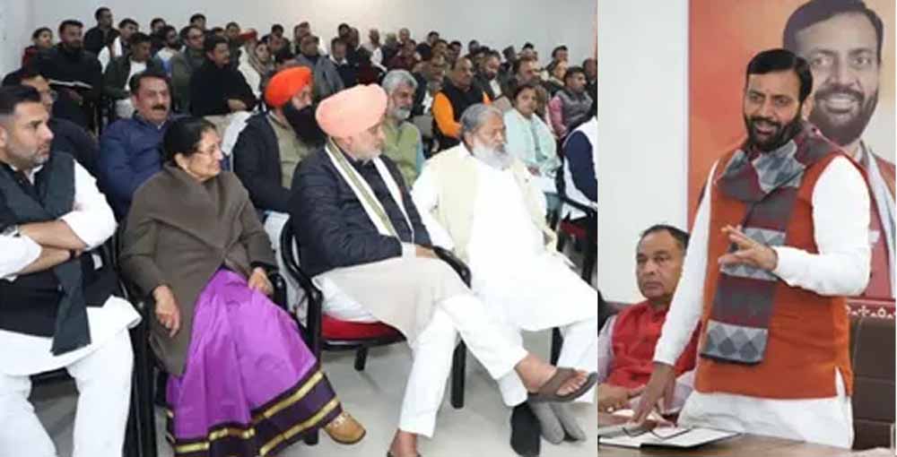 हरियाणा के पंचकूला स्थित बीजेपी के पंचकमल कार्यालय में मंगलवार को एक बड़ी संगठनात्मक बैठक हुई। इस दौरान नगर निगम चुनावों में जीत, 'वीबी जीरामजी' सम्मेलन और 'मन की बात' कार्यक्रम को लेकर महत्वपूर्ण फैसले लिए गए। बैठक में सीएम नायब सिंह सैनी, प्रदेश अध्यक्ष पंडित मोहनलाल बडौली और प्रदेश प्रभारी डाक्टर सतीश पूनिया ने एक-एक विषय को उपस्थित नेताओं के सामने बड़ी बारीकी से रखा।