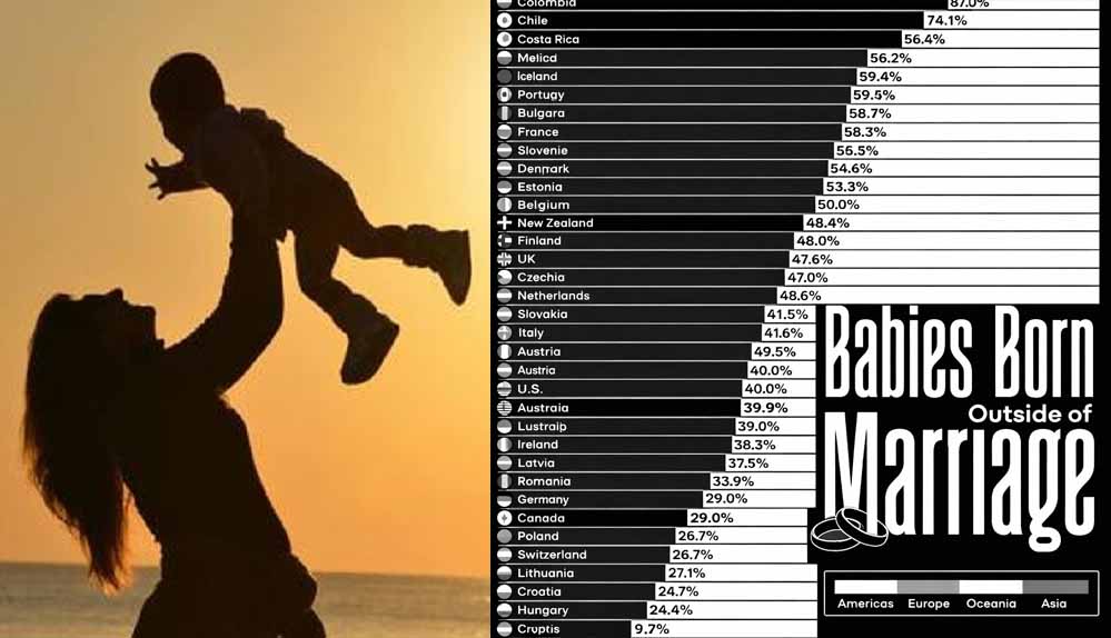 ओईसीडी (OECD) के नए आंकड़ों के अनुसार, विश्व के कई देशों में औसतन लगभग 43% बच्चे विवाह के बाहर पैदा हो रहे हैं। यानी बिना शादी के महिलाएं मां बन रही हैं। आइए जानते हैं कि इस मामले में कौन-से देश सबसे आगे हैं…